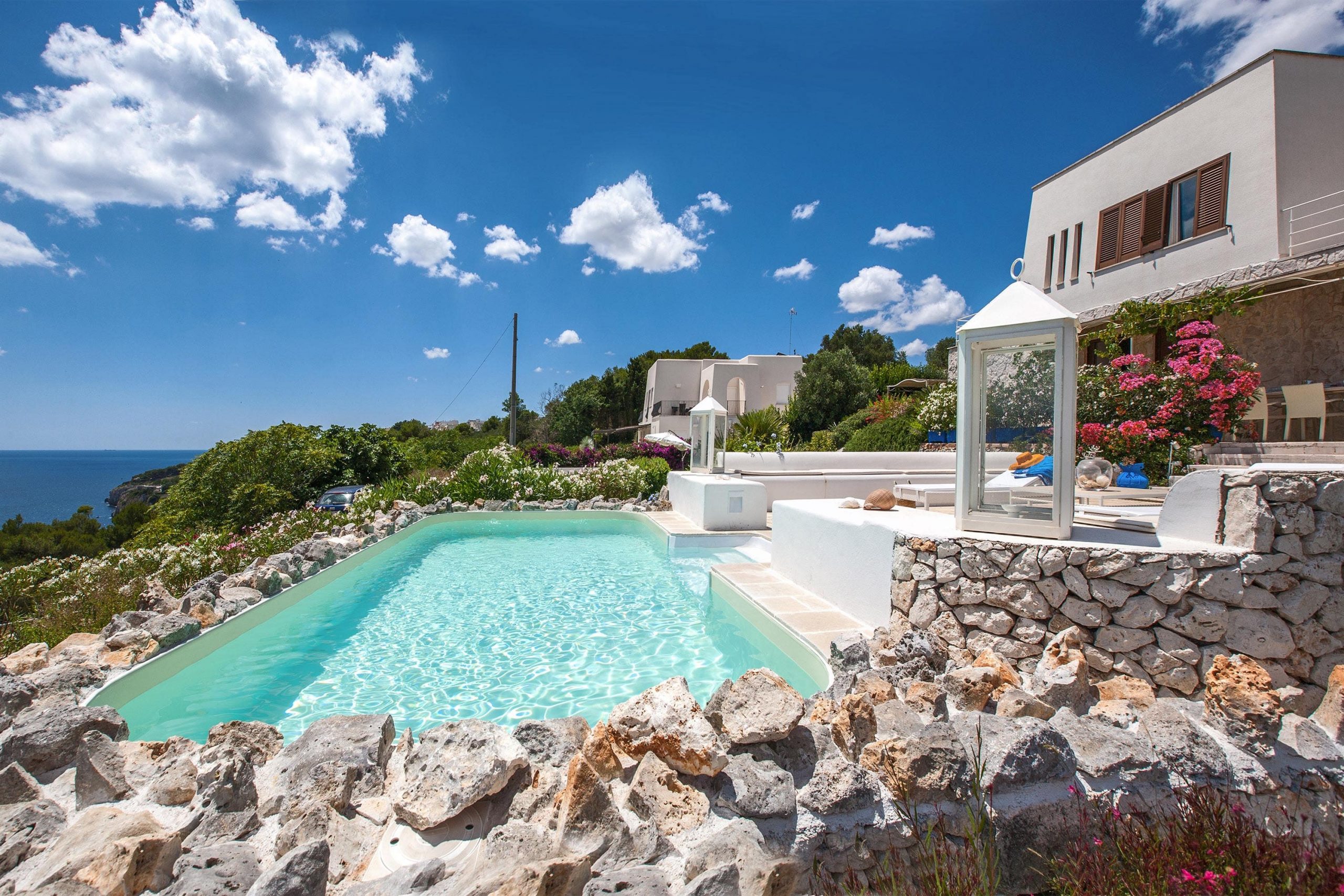 Villa Castro, situata sul promontorio che sovrasta le grotte marine della Zinzulusa e dei Romanelli, è la casa ideale se volete svegliarvi di fronte al mare e guardare l'orizzonte del litorale salentino.